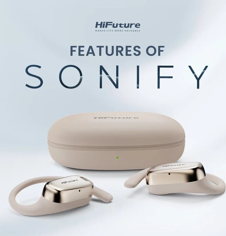 Слушалки HiFuture Sonify Champagne Gold, Open Ear Comfort, Bluetooth 5.4, 4 Mics ENC Calling System, Playtime up to 20 Hours, IP