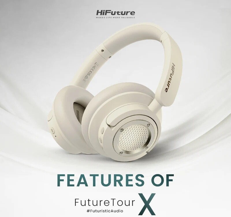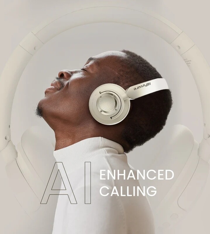 Слушалки HiFuture FutureTour X Champagne Gold, Hybrid Active Noise Canceling, 35-Hour Playtime, Memory Protein Foam Cover, AI En