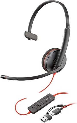 HP Poly Blackwire 3210 Monaural USB-C Headset +USB-C/A Adapter