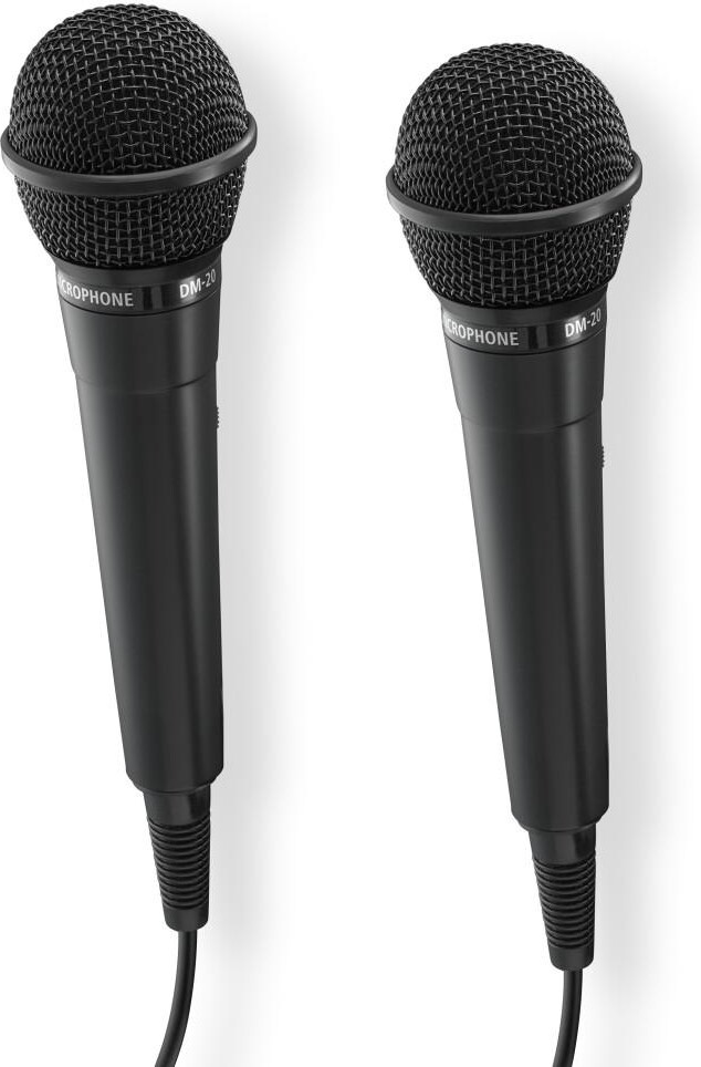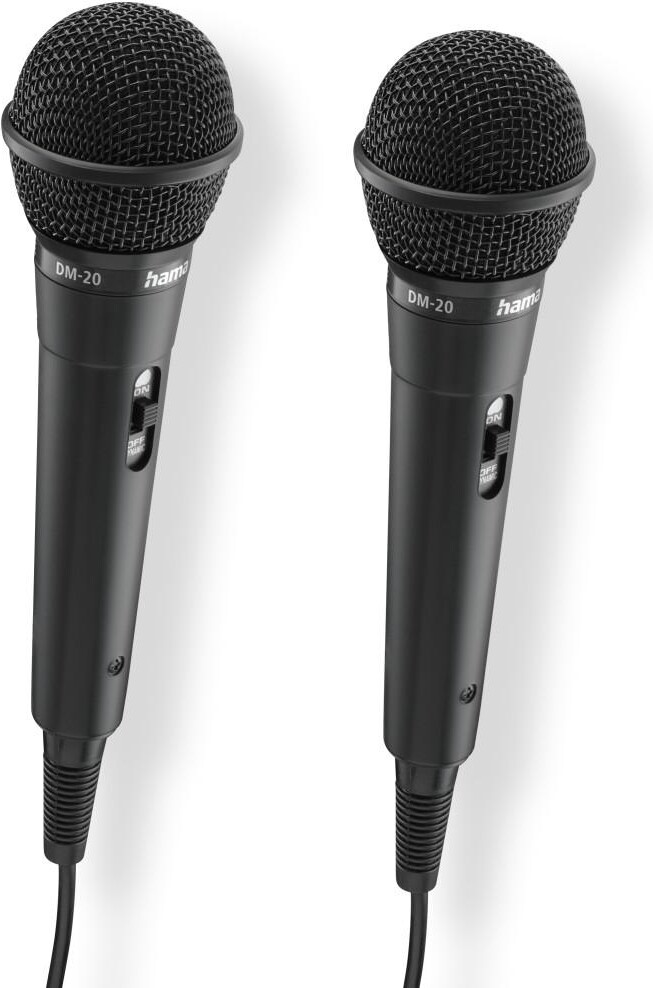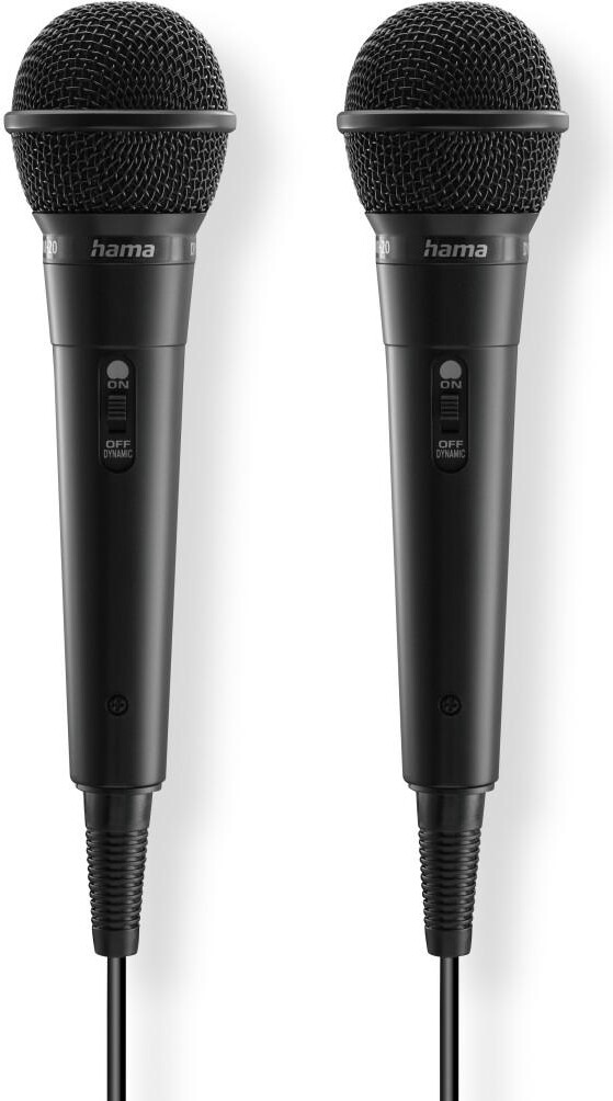 HAMA Аудио динамични микрофони “Karaoke”, Комплект 2 бр. с кабел жак 2,5 м + адаптер, вкл./изкл.