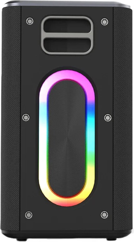 HiFuture MusicBox е безжична караоке тонколона с впечатляваща изходна мощност от 100W, създадена да превърне всяко събиране в истинско парти и да ви позволи да се наслаждавате на любимата си музика с желаната сила на звука. Оборудвана е с два високочестотни говорителя за кристално чисти вокали и детайлни мелодии, както и с два нискочестотни говорителя, които осигуряват дълбок и плътен бас. Създайте перфектната атмосфера за следващото си парти с RGB LED светлини, които се синхронизират с музиката. Наблюдавайте как стаята ви оживява с ослепителни цветове и светлинни ефекти, създавайки идеалното настроение за вашето парти. MusicBox позволява излъчване на живо и записи, за да можете да завладявате публиката, да създавате съдържание и да преживявате отново най-незабравимите си моменти. Изпитайте звука по съвсем нов начин благодарение на технологията True Wireless Stereo (TWS). Свържете две колони за завладяваща звукова сцена, която изпълва пространството около вас и ви дава силата да създадете своя собствена звукова вселена. Тонколоната разполага с вграден цифров сигнален процесор (DSP) и поддържа многолентов еквалайзер (EQ) за персонализиране на звученето според вашите предпочитания. В комплекта са включени и два безжични микрофона, които са идеални за дуети и групови караоке изпълнения. Наслаждавайте се на партито без прекъсване благодарение на вградената външна батерия с капацитет 12000mAh, която не само поддържа музиката жива цяла нощ, но и позволява зареждане на устройства като iPhone 14. Където и да отидете, MusicBox на HiFuture е с вас. Нейният преносим дизайн и регулируем презрамен колан я правят перфектния спътник за музика в движение.