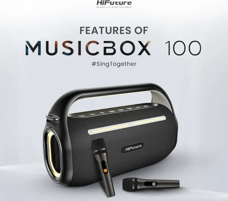 Тонколони HiFuture MusicBox100 Black, 20W Output, Karaoke Enable, Two Wireless Microphone, 4000mAh Battery (Support Power Bank),