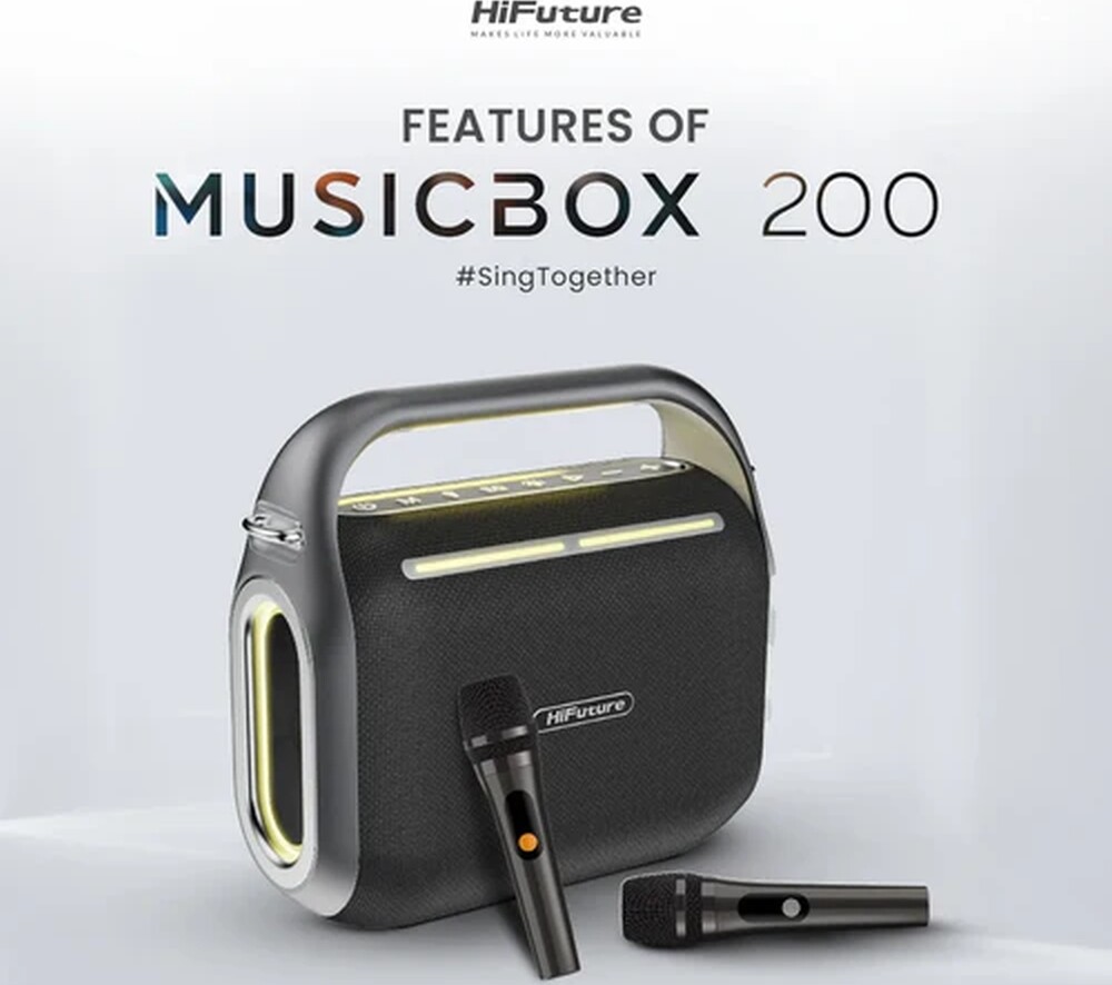 Тонколони HiFuture MusicBox200 Black, 100W Output, Karaoke Enable, Two Wireless Microphone, 12000mAh Battery (Support Power Bank