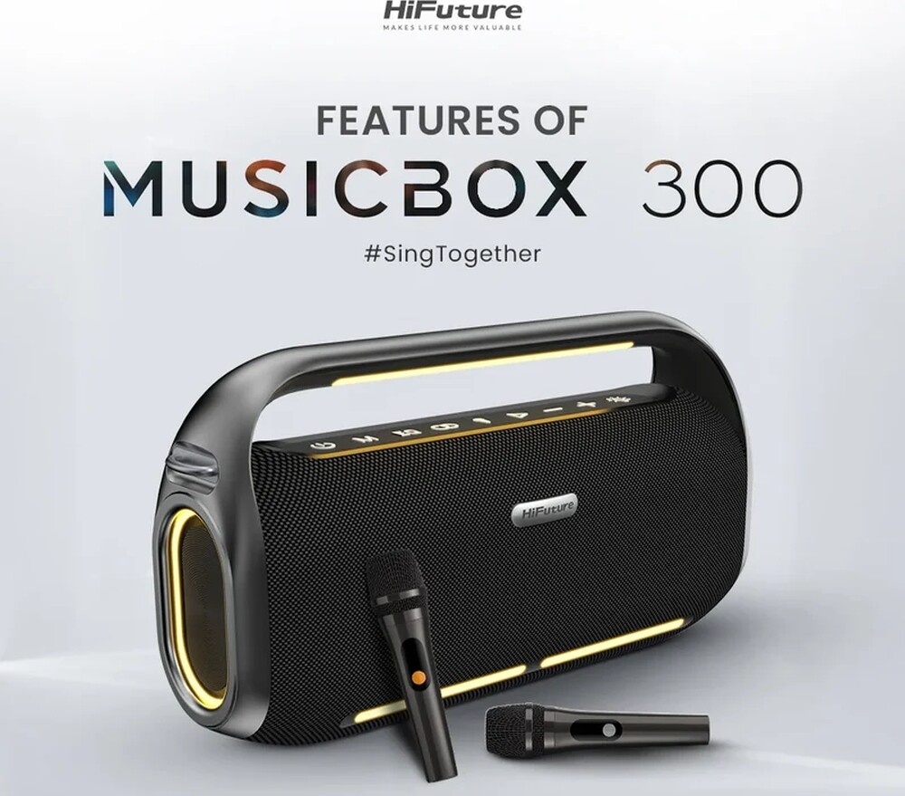 Тонколони HiFuture MusicBox300 Black, 150W Output, Karaoke Enable, Two Wireless Microphone, 18000mAh Battery (Support Power Bank