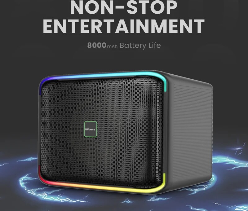 HiFuture Gravity е мощна и преносима безжична Bluetooth тонколона, оборудвана с 30W нискочестотен говорител и 15W високочестотен говорител, които осигуряват плътен бас и чисти, детайлни високи честоти за впечатляващо аудио изживяване. Динамичните RGB LED светлини придават клубна атмосфера, а модерната безжична технология v5.3 осигурява стабилна връзка без прекъсвания. Когато искате още повече енергия, специалният режим за усилване на баса добавя допълнителна мощ и дълбочина. Gravity е създадена за забавления без ограничения. С IPX7 водоустойчивост можете спокойно да я използвате край басейна или на открито, без притеснения, и да се насладите на музиката в пълния ? блясък, където и да сте. За още по-впечатляващ звук свържете две тонколони Gravity чрез TWS функцията и се насладете на по-плътно, пространствено и завладяващо стерео звучене. Всичко това е събрано в стилен, здрав и удобен за пренасяне дизайн, допълнен от до 8 часа живот на батерията за дълги часове музика и добро настроение.