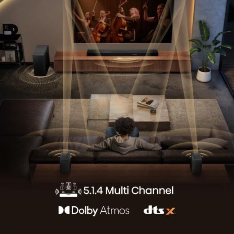 Потопете се в завладяващия свят на звука с 5.1.4-канална съраунд система с технологии Dolby Atmos и DTS:X. Четири високоговорителя, насочени нагоре, създават впечатляваща звукова атмосфера, която ви обгръща с 360-градусов звук от всяка посока. Насладете се на обгръщащ звук, идващ както от телевизора, така и от саундбара. С Hi-Concerto устройствата работят в пълен синхрон, изграждайки домашно кино без излишни кабели и оборудване. Оптимизирайте звука според особеностите на вашето помещение, за да се насладите на персонализирано аудио изживяване, което се адаптира плавно към пространството ви и осигурява прецизно звуково качество благодарение на вградената AI технология във вашия телевизор Hisense. Потопете се в 360-градусов звук с безжичен заден съраунд, оборудван с два високоговорителя, насочени нагоре. Усетете истинския потапящ звук, който ви обгръща отгоре и от всички посоки. Управлявайте лесно режимите на звука на вашия Hisense саундбар директно от дистанционното на телевизора, за да оптимизирате аудиото и диалозите. Благодарение на EzPlay 3.0, състоянието на безжичните високоговорители се показва в реално време на екрана на телевизора за плавен и интуитивен контрол. Задвижван от усъвършенствани AI алгоритми, AI EQ режимът премахва изкривяванията, подобрява яснотата и създава завладяващи звукови пейзажи за всяка сцена. Потопете се в света на игрите с Game Pro – режим, който добавя динамичен звук, който подчертава всяко движение, всяка битка и всяка победа, превръщайки гейминг изживяването ви в истински епос. Управлявайте и персонализирайте лесно саундбара си, за да внесете хармония в музиката и живота си само с няколко докосвания.