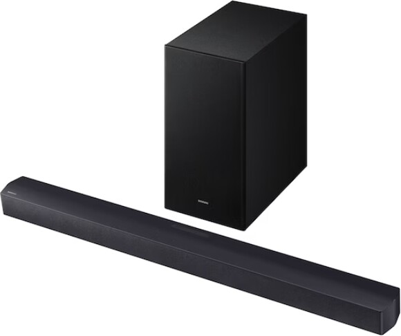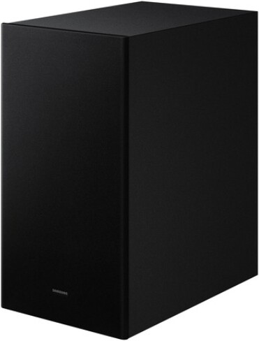По-добро аудио изживяване с пълна 2.1-канална звукова система, която включва безжичен субуфер за дълбоки, богати баси. Dolby Audio и DTS Virtual:X създават просторен 3D съраунд звук, включително усещането за височина, чрез техники за обработка на звука – без необходимост от високоговорители, насочени нагоре. Наслади се на песни и саундтраци с повече бас. Режимът Bass Boost усилва ниските честоти, за по-мощно въздействие при слушане. Получи оптимално аудио изживяване за всяка сцена. Твоят саундбар разпознава типа съдържание, което гледаш, и автоматично адаптира настройките, за да възпроизвежда ясни гласове и детайли от звука. Чуй диалога в любимите си предавания и филми с кристална яснота. Режимът Voice Enhance усилва звука на гласовете и оптимизира настройките на еквалайзера за яснота при слушане. Осигури си конкурентно предимство с Game Mode. Настройките на звука се оптимизират автоматично, така че всичко, което трябва да направиш, е да се включиш и да играеш. А технологията за премахване на кръстосани разговори премахва разсейващите звуци, като ти позволява да чуеш точното местоположение на твоите противници. Гледай телевизия през нощта, без да събуждаш останалите вкъщи. Нощният режим компресира басите, за да намали децибелите, като осигурява по-меко звучене и същевременно поддържа аудиото ясно. Комплектът безжични задни високоговорители ти позволява да разшириш своя саундбар до съраунд звукова система за по-добро кинематографично изживяване. С HDMI ARC порта на твоя саундбар можеш да го свържеш към външно устройство и да се наслаждаваш на богато, динамично аудио без загуба на качество. Кабелите пречат на твоята инсталация? Просто използвай Bluetooth, за да свържеш саундбара си към телевизора и се наслади на цялото си любимо съдържание безжично. Твоето дистанционно за телевизор Samsung не е само за телевизора. Използвай го, за да управляваш ключови функции на саундбара като мощност, сила на звука и звукови ефекти.