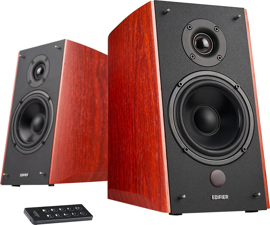 Edifier R2000DB 2.0 Bookshelf Speakers, Bluetooth, 3.5mm to RCA, Optical, 1-inch Tweeters, 5-inch Drivers, 120W (RMS), Control Knobs and Remote Control, Brown