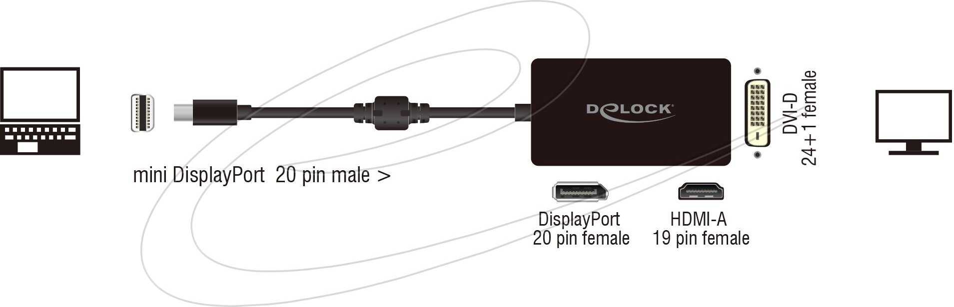 Адаптер Delock mini DisplayPort 1.1 мъжко към DisplayPort / HDMI / DVI женско black