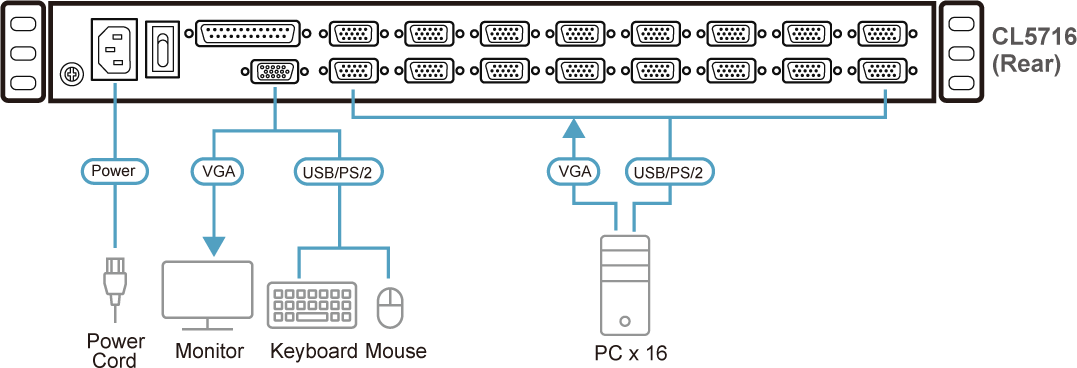 KVM Конзола ATEN CL5716M, 17" 16-Port PS/2-USB VGA Single Rail LCD KVM Switch