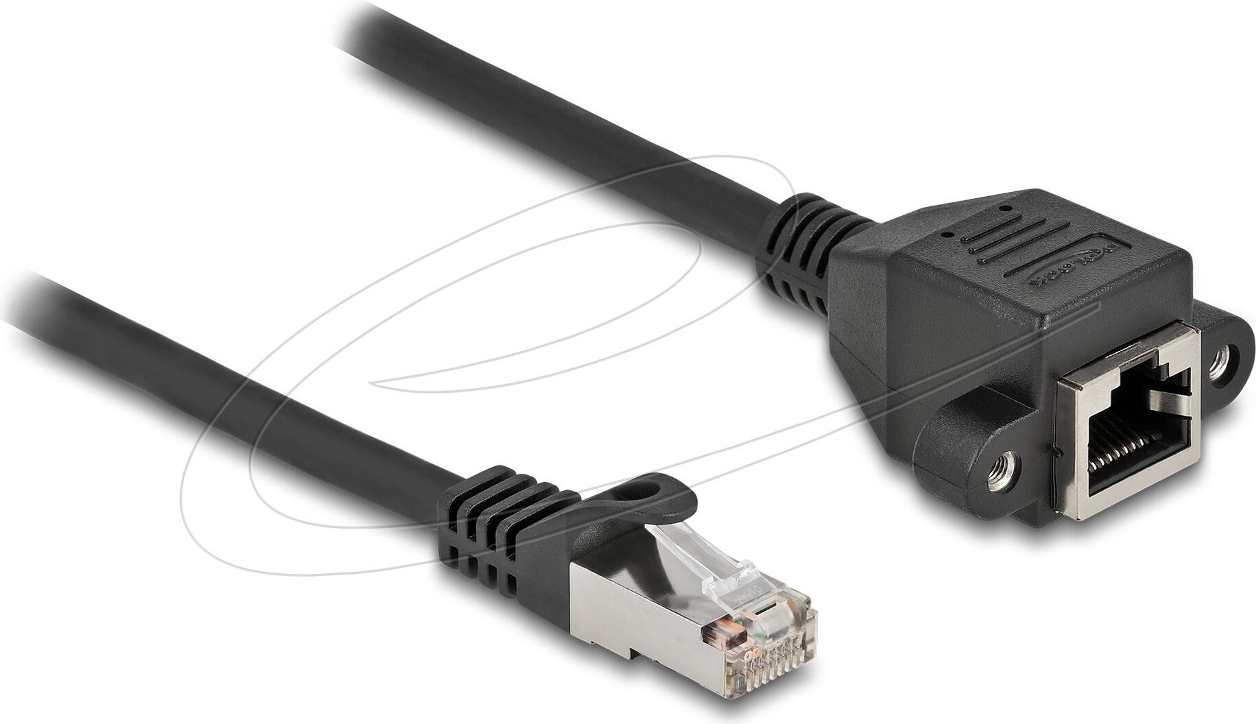 Delock Мрежов кабел удължителен S/FTP RJ45 мъжко към RJ45 женско, Cat. 6A, 25 cm, черен