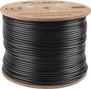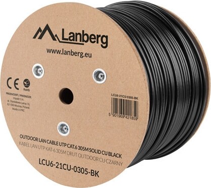 Кабел Lanberg LAN cable CAT.6 UTP 305m solid outdoor CU, Fluke passed, Black