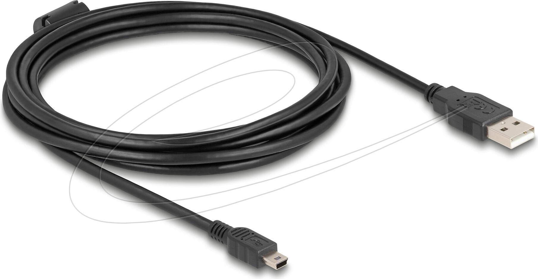 Кабел Delock USB 2.0 мъжко към mini-B USB 2.0 мъжко, двойно екраниран, трансфер до 480 Mb/s, 3.0м, Черен