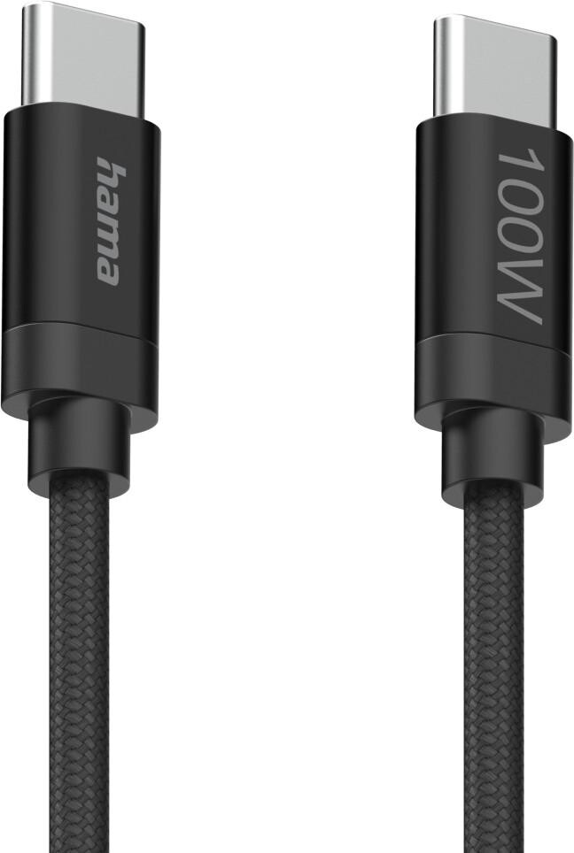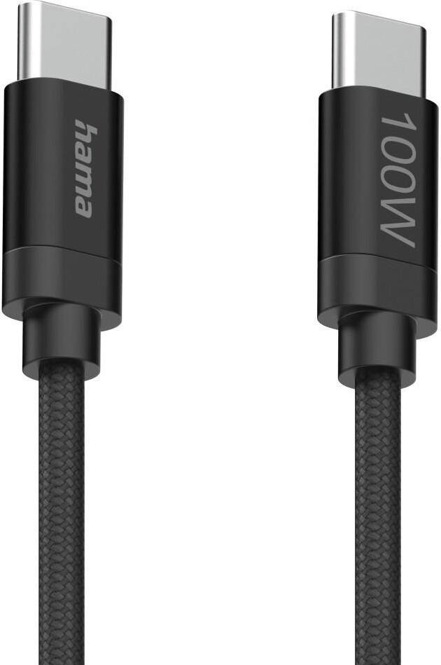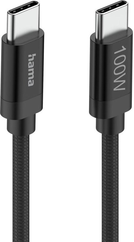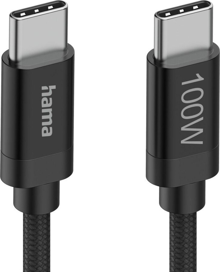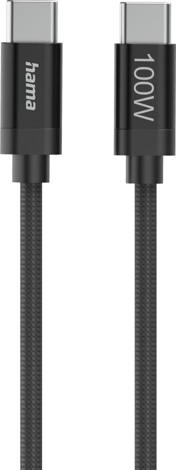 Hama Кабел за зареждане, "Fabric", USB-C - USB-C, 100 W, 1.5 m, Nylon, black