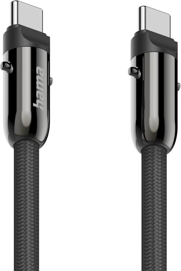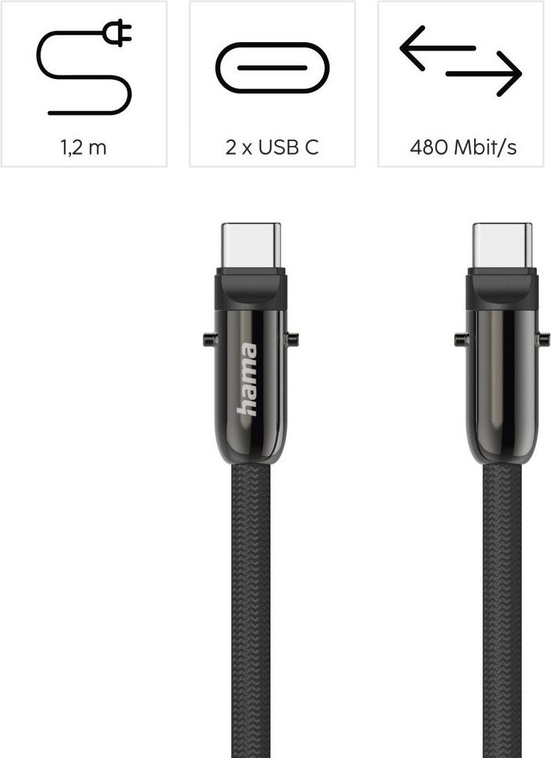 Hama Кабел за зареждане, USB-C, 2 в 1 с връзка за телефон, 1.2 m, черен