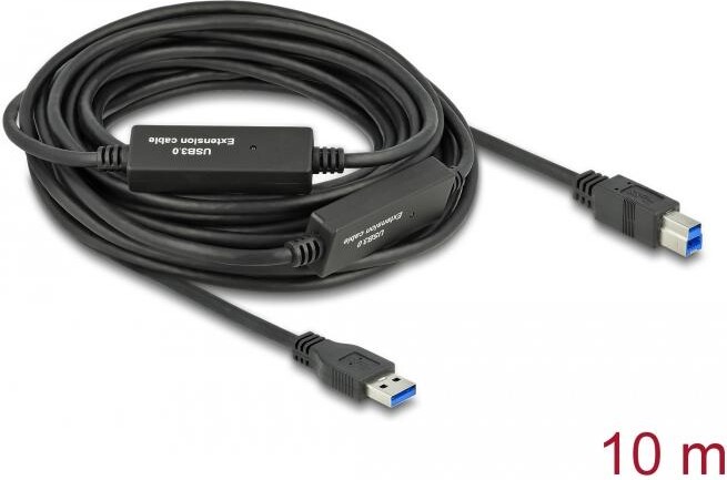 Кабел Delock USB-A мъжко - USB-B женско, USB 3.2Gen1, 10м, Черен