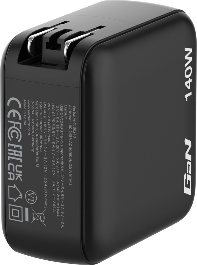 Зарядно устройство Verbatim Mini GaN Charger 140W with Display