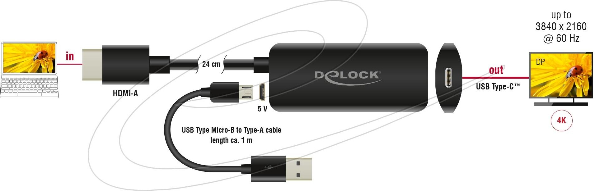 Delock адаптер HDMI-A мъжко към USB Type-C™ женско (DP Alt Mode) 4K 60 Hz