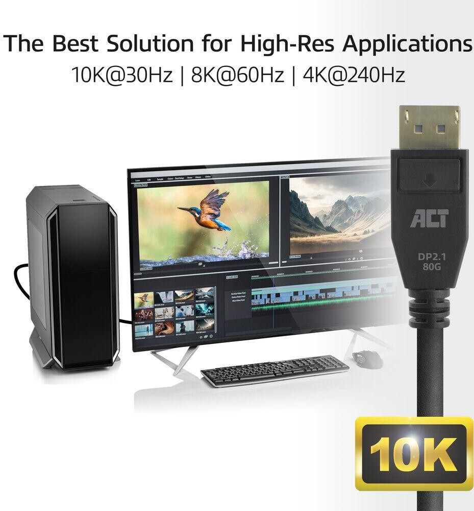 ACT Кабел Display port 2.1 мъжко - HDMI-A мъжко, 3м, черен, булк опаковка