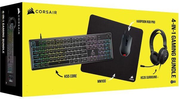 CORSAIR Геймърски бъндъл 4 в 1 - K55 CORE / HARPOON RGB PRO / HS35 Surround v2 / MM100
