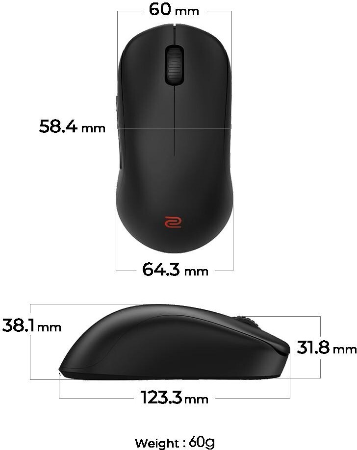 Геймърска безжична мишка ZOWIE U2-DW 4K, 2.4G, Черна