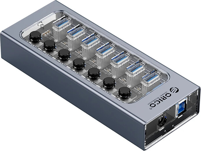 Orico хъб USB3.0 HUB 7 port with Power Adapter, On/Off buttons, Aluminium - AT2U3-7AB-EU-GY
