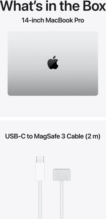 | Батерия, cell: | 72.4-watt-hour lithium-polymer battery, Up to 22 hours video streaming, Up to 14 hours wireless web, USB-C to MagSafe 3 Cable (2 m), 70W USB-C Power Adapter |