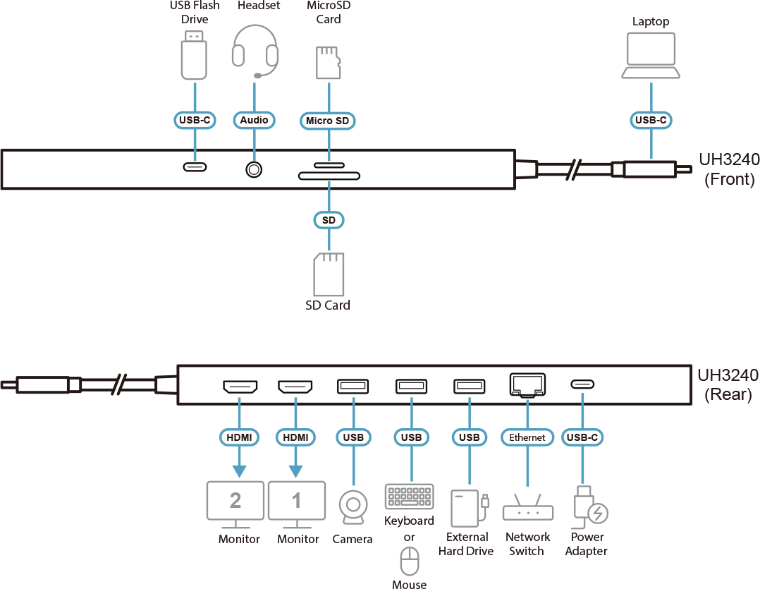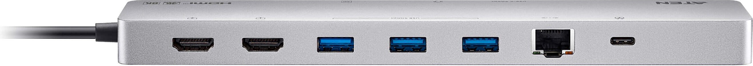 ATEN Докинг 11-in-1 USB-C Multiport Dock + Power Pass-Through, 2 x HDMI, LAN,3.5mm, USB-C, SD Card , microSD, 3 x USB 3.2