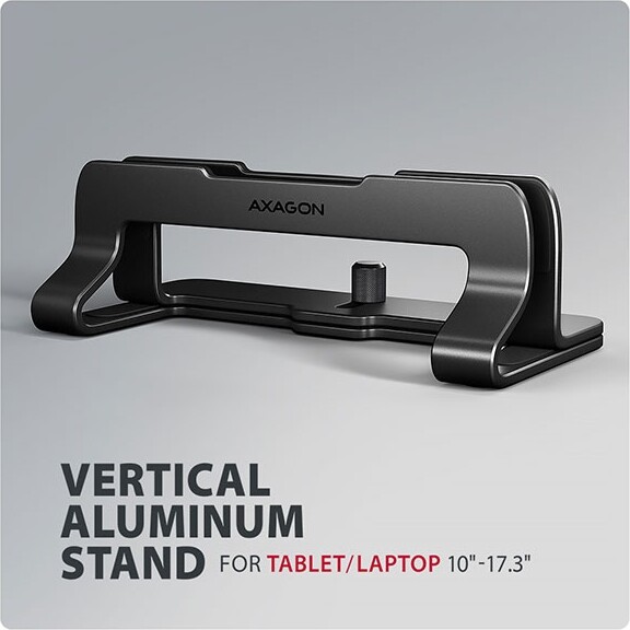 AXAGON STND-VB is an elegant and practical stand for a laptop or tablet that allows vertical placement of the device, helping to keep your workspace organized and free up more desk space. It is suitable for devices with a screen size from 10" to 17.3". The compact and easily portable design ensures convenient use at home, in the office or on the go.