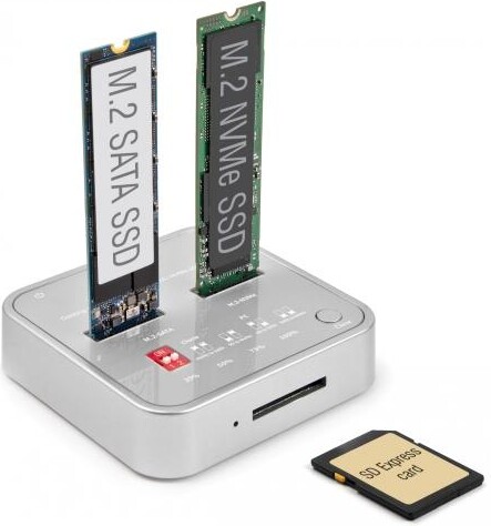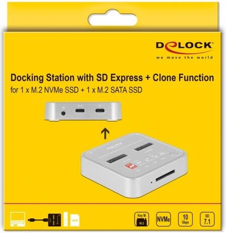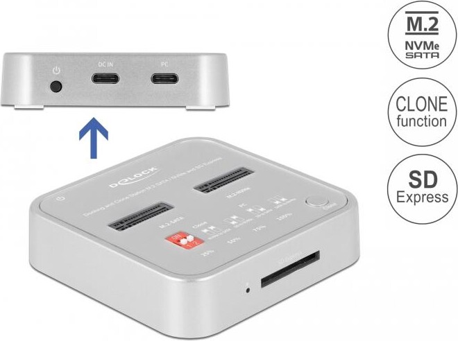 Докинг станция Delock 1 x M.2 NVMe SSD + 1 x M.2 SATA SSD, SD Express Card Reader, Клониране