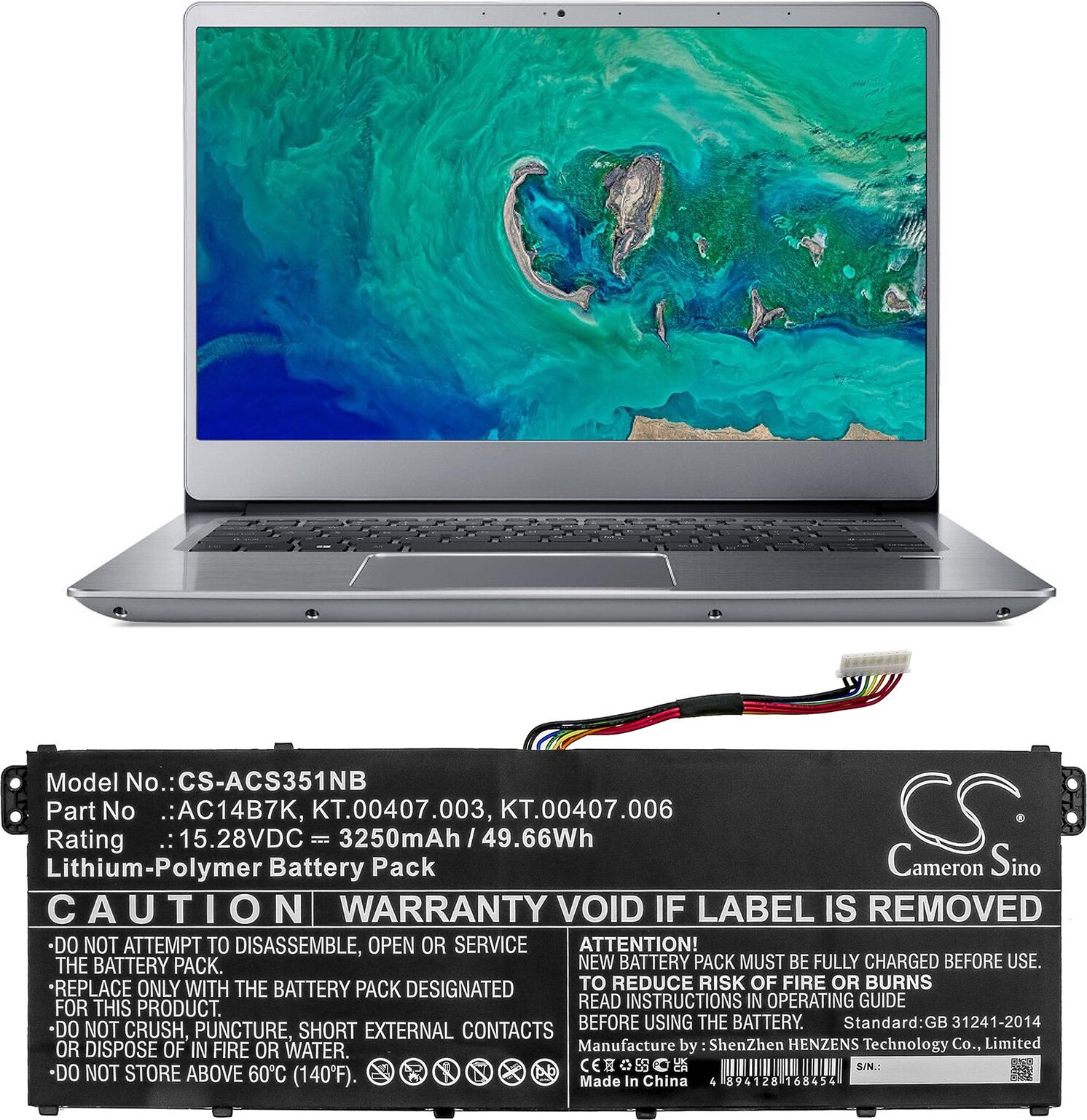 Батерия за лаптоп ACER Aspire 5 A515-41G-18Z3, Nitro 5 AN515-41-F6VS, Swift 3 SF313-51-514S, AC14B7K, LiPO 15.28V 3250 mAh CA