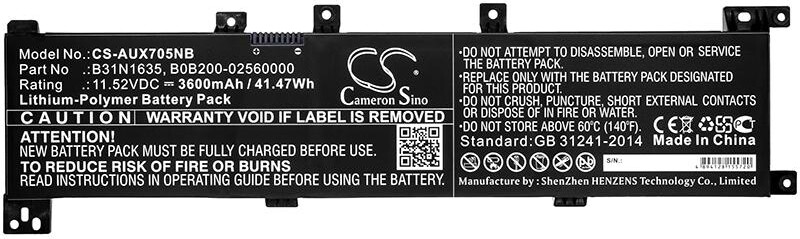 Батерия за лаптоп ASUS A705QA, VIVOBOOK F705UV-BX186T, VIVOBOOK F705UV-BX186T, B31N1635 LIPo 11,52V 3600 mAh CAMERON SINO
