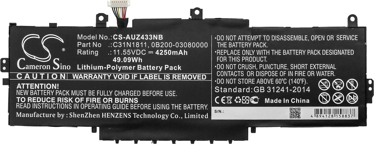 Батерия за лаптоп ASUS BX433FN, ZenBook 14 UX433FA-A5047R, C31N1811 LiPo 11.55V 4250mAh CAMERON SINO