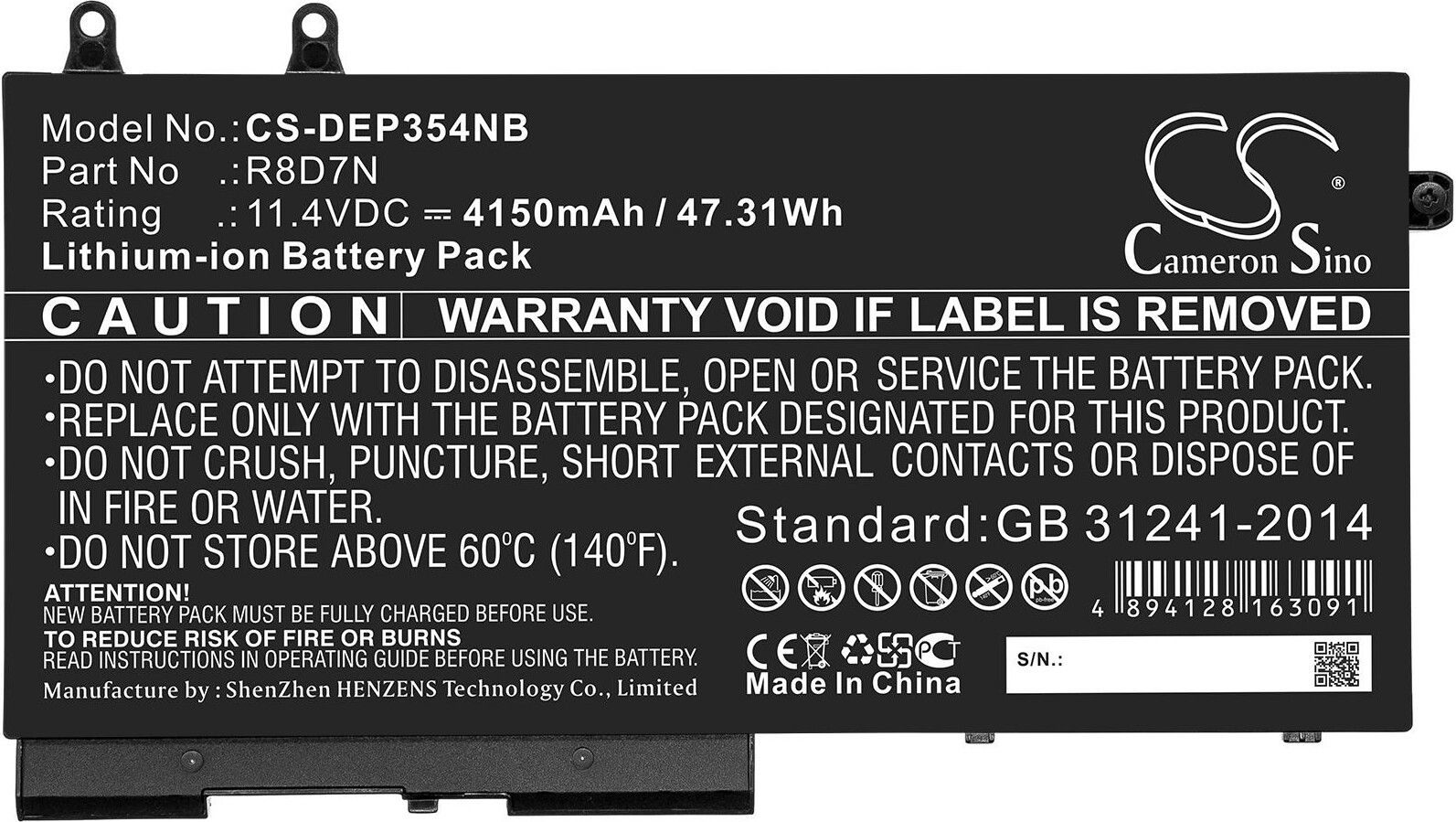 Батерия за лаптоп DELL Inspiron 7506, LATITUDE 5400, Precision M3540 49HG8 LiIon 11,4V 4100mAh CAMERON SINO
