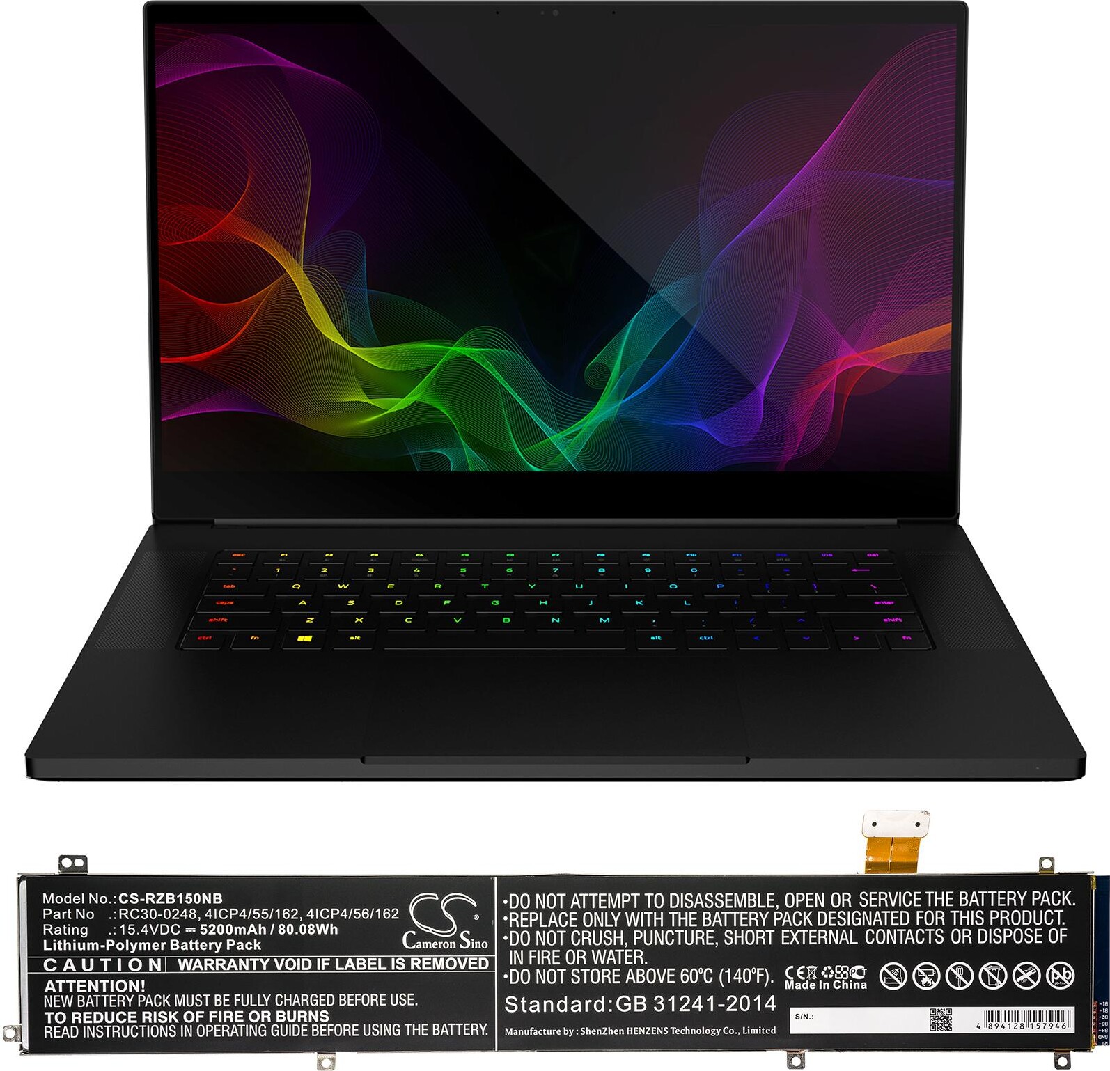 Батерия за лаптоп RAZER BLADE 2070, Blade 15, RZ09-02386E91 RC30-0248 LiPo 15.4V 5200 mAh Cameron Sino
