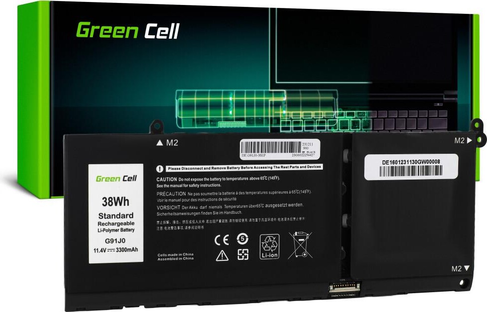 Батерия за лаптоп Dell Latitude 3320 3330 3520 Inspiron 15 3511 3525 5510 G91J0 11.4V 3300mAh LiPo GREEN CELL