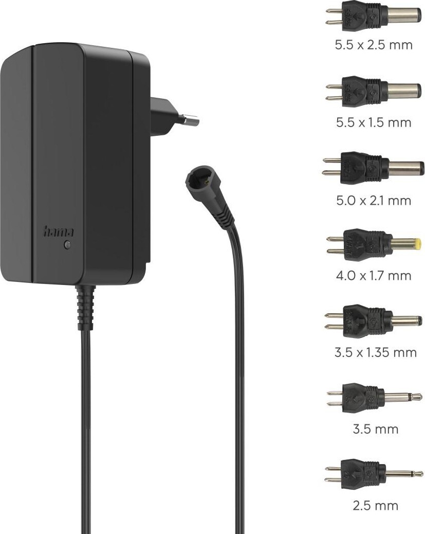 HAMA Универсално захранване, регулируемо, 1500mA, 24W, max. 24V, 7 адаптера