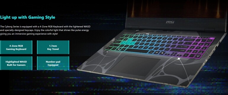 Лаптоп MSI Cyborg 15 B13WEKG, i5-13420H (8C/12T, up to 4.60GHz, 12 MB), GeForce RTX 5050 8GB GDDR7 440 AI TOPS, 15.6" FHD (1920x