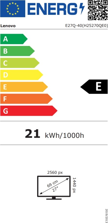 Монитор Lenovo ThinkVision E27Q-40 27" IPS, WLED, 2560x1440, 16:9, 100Hz, 4ms, 350 cd/m2, 1500:1, Speakers 2Wx2, HDMI, DP, Tilt,