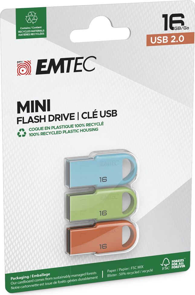 Флаш памет EMTEC D250 MINI 16GB - 3 бр.