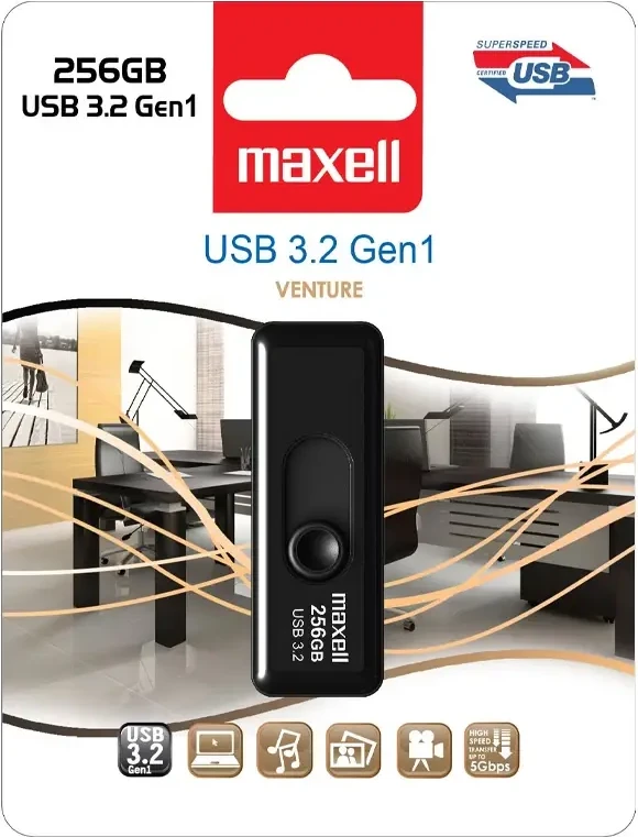 Флаш памет MAXELL VENTURE, 256GB USB 3.2 black