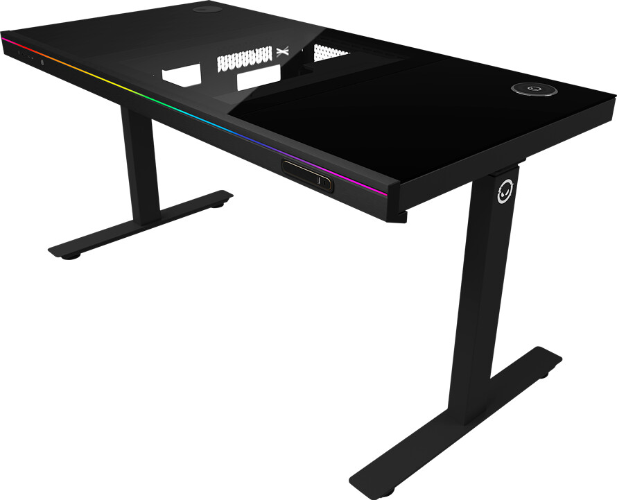 The ELITE 90 series features an integrated PC chassis built directly into the desk structure. This design supports Mini-ITX to full ATX mainboards, graphics cards up to 410mm long (325mm with vertical 2.5″ SSD installed) and CPU coolers up to 120mm high. The integrated design eliminates the traditional PC tower footprint while maintaining full functionality and upgradeability.