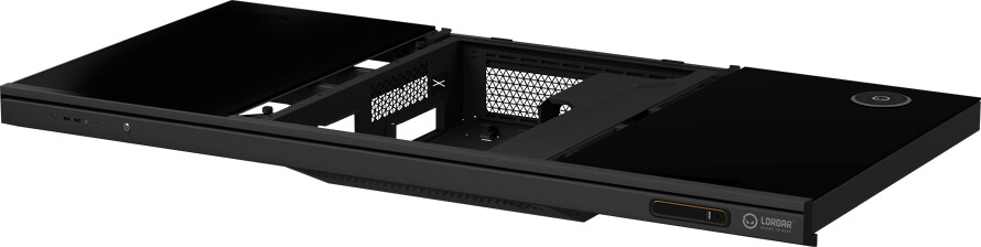 The integrated chassis delivers capabilities similar to the typical ATX mid-tower case, allowing users to build their systems inside the deck without significant compromises to regular hardware selection. The cooling system supports 360/280/240mm liquid cooling radiators, compatible with most mainstream AIOs and custom loops. Support for 3x 120mm front fans ensures optimal airflow. The chassis provides mounting points for 1x 3.5″ HDD and 1x 2.5″ SSD. ATX power supplies up to 180mm in length are supported. Front I/O connectivity includes 3A + 2C USB connections and 3.5mm audio jack, positioned for convenient access.