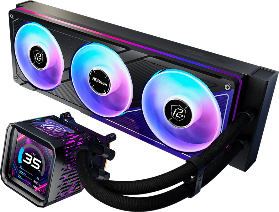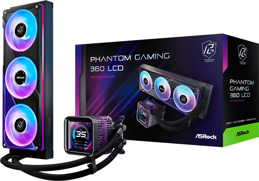 Asrock PHANTOM GAMING 360 LCD, AiO liquid cooler, ARGB, IPS LCD, 360 mm radiator, AM5, AM4, LGA1851, LGA1700, 90-APGA36-BAAGA5, 6Y