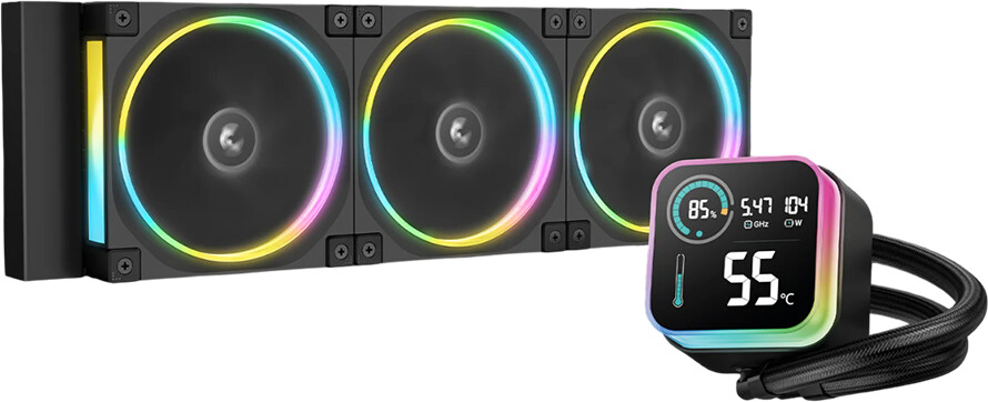 DeepCool LQ360 ULTRA ARGB, 360mm CPU Liquid Cooler, 3x120mm FL12 ARGB Fans, LED Screen, Anti-Leak Technology, Black, LGA1851/1700/1200/115x, AMD AM5/AM4