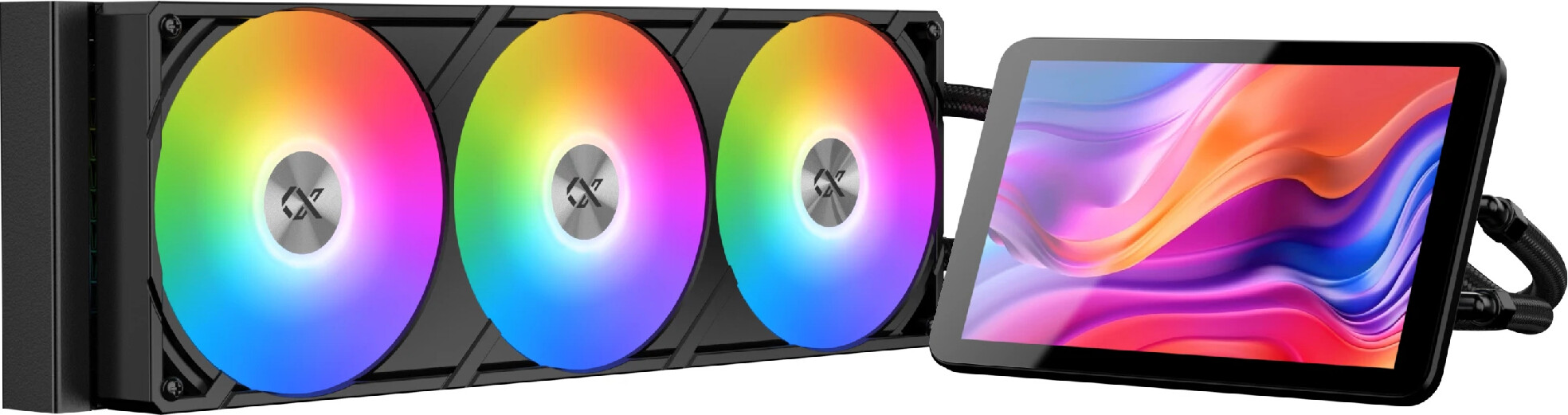 7"Multi Display LCD Panel (Secondary Monitor 1200 x 800) The Magnetic LCD Module Design Can be Remove From the Pump Head or Rotate Freely Backlit ARGB Lighting Effect Pump Head Magnetic Logo Metal Plate 360 x 120 mm PWM ARGB Fan 380 mm Black Sleeved Tube Mini ARGB LED Controller High Performance Thermal Paste