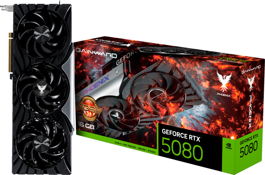 Gainward GeForce RTX 5080 Phoenix GS 16GB GDDR7, 256 bit, 1x HDMI 21b, 3x DP 21b, 3 Fan, 1x 16pin pwr connector, 850W, 331.9 x 133.1 x 60 mm