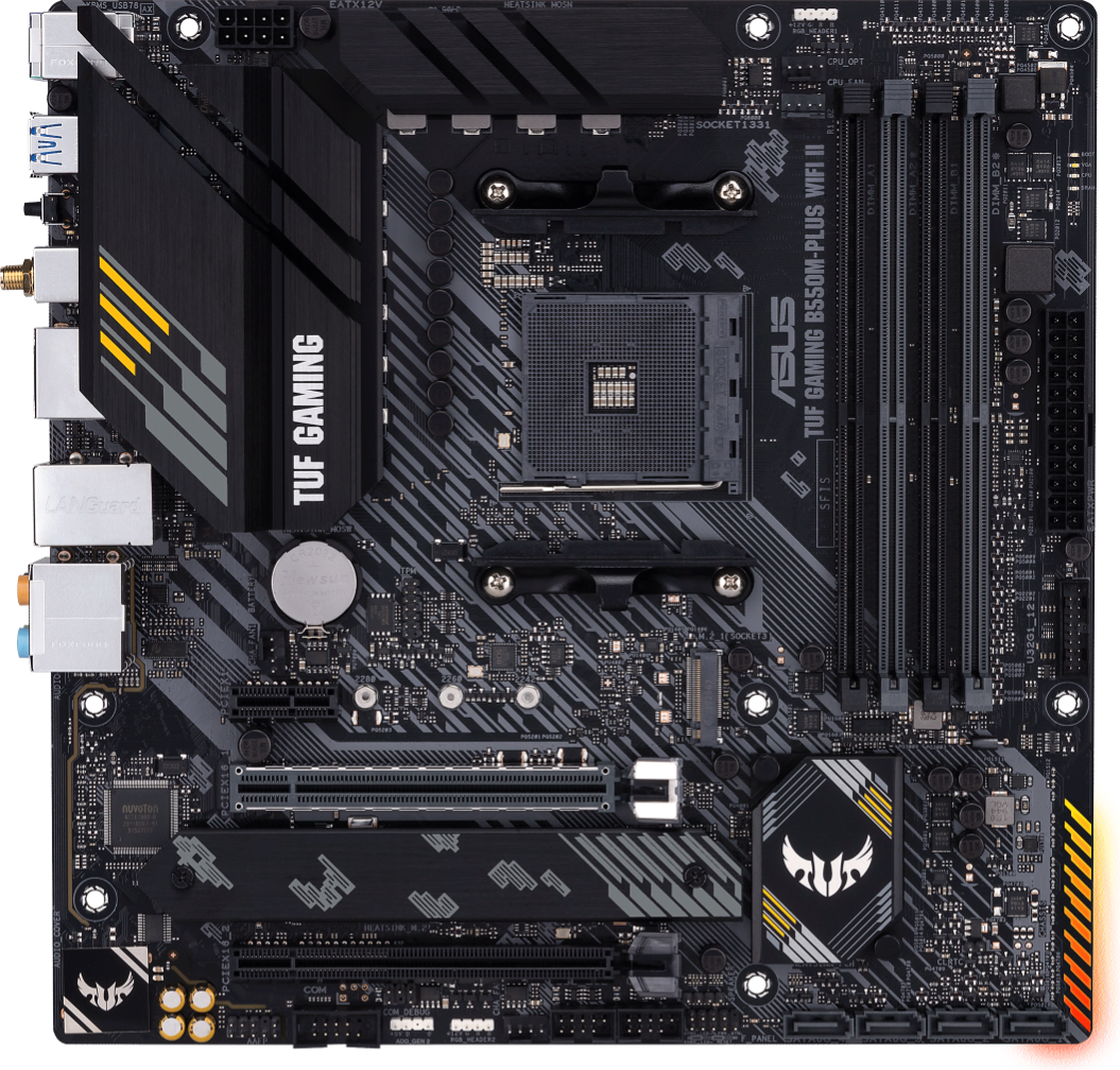 Дънна платка ASUS TUF GAMING B550M-PLUS WIFI II, AMD AM4, micro ATX, 4x DDR4, dual M.2, Wi-Fi 6, PCIe 4.0, Aura Sync RGB