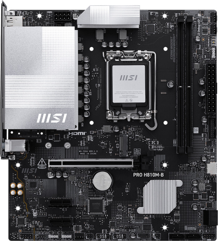 PRO H810M-B offers a simple design with a harmonious silver color scheme that perfectly matches both white and black PC builds. It is engineered with 2.5G LAN and PCIe 5.0, ready for the Intel® Core™ Ultra processors.