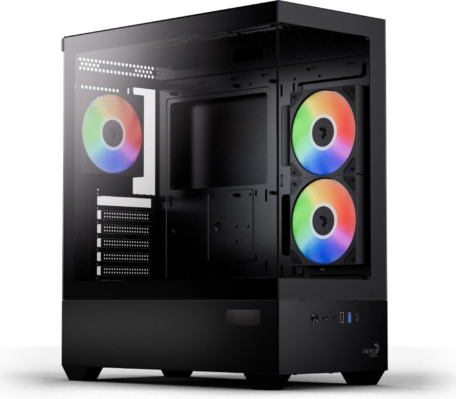 Full tempered glass front and side panels showcase your build in stunning detail Includes three 120mm ARGB fans (two reverse-blade) with Rifle Bearing Supports GPUs up to 418mm for top-tier gaming and creative performance Fits CPU air coolers up to 165mm for powerful and quiet cooling Magnetic and PVC dust filters make cleaning fast and hassle-free Snap-fit side glass panel allows easy upgrades and maintenance Comes with a real-time digital status display built into the case exterior